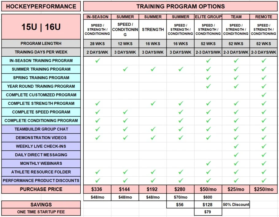 | HOCKEYPERFORMANCE | In-Season | Summer | Summer | Summer | Elite Year-Round | Team | Remote |